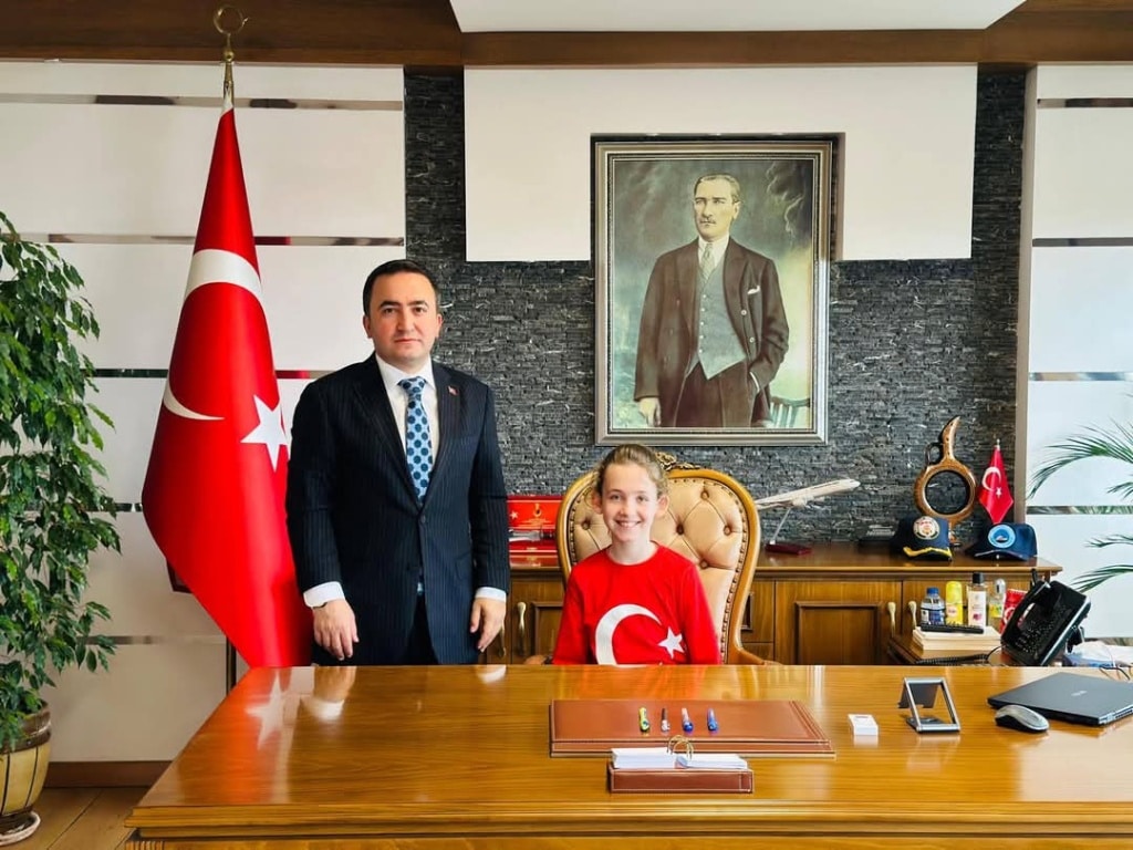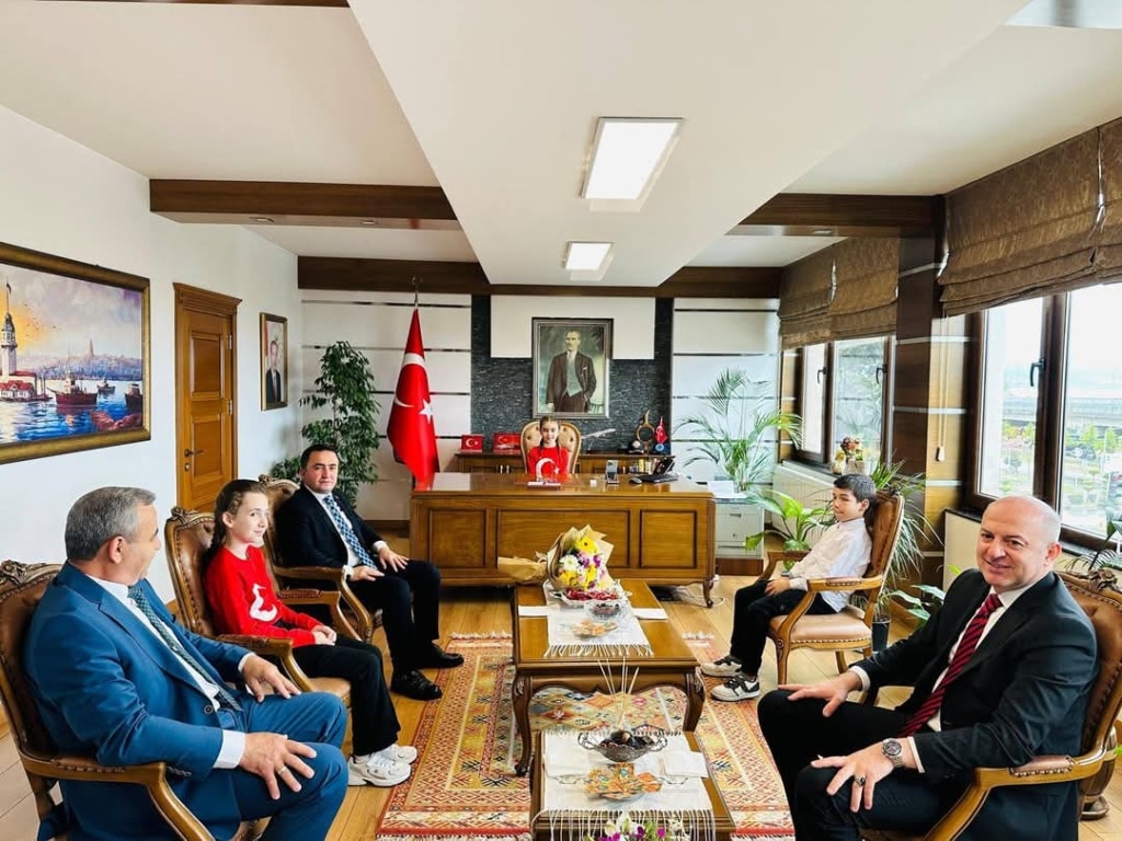 23Nisan Makam ziyareti dolayısıyla ilçemiz kaymakamı Sayın Ahmet KAVANOZ' u ziyaret ettik.Kaymakamımız koltuğunu öğrencilerimiz İrem DENİZ,Simay ÇETİN ve Talha KÖMÜRCÜ'ye devretti.Kaymakamımız Ahmet KAVANOZ öğrencilerimizin projelerini dinleyerek bayramlarını kutladı.Misafirperverliğinden dolayı Kaymakamımız Ahmet KAVANOZ 'a çok teşekkür ediyoruz.